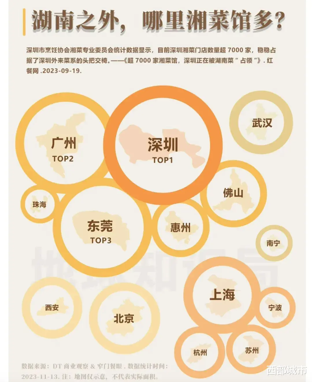 比如,深圳的外地人中,湖南人占比在30%以上;深圳的湘菜馆数量更是超过了粤菜馆。