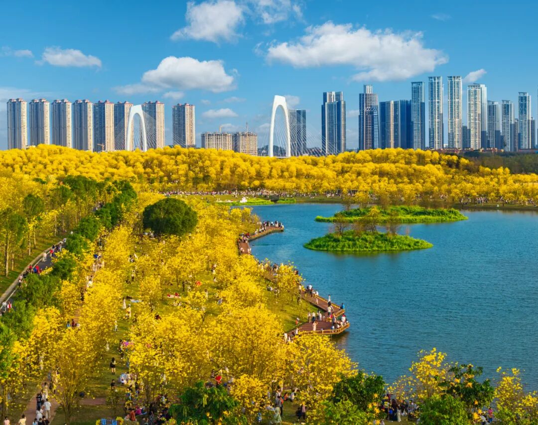 而南宁人集体占领这座山头,就为了追黄花风铃木。