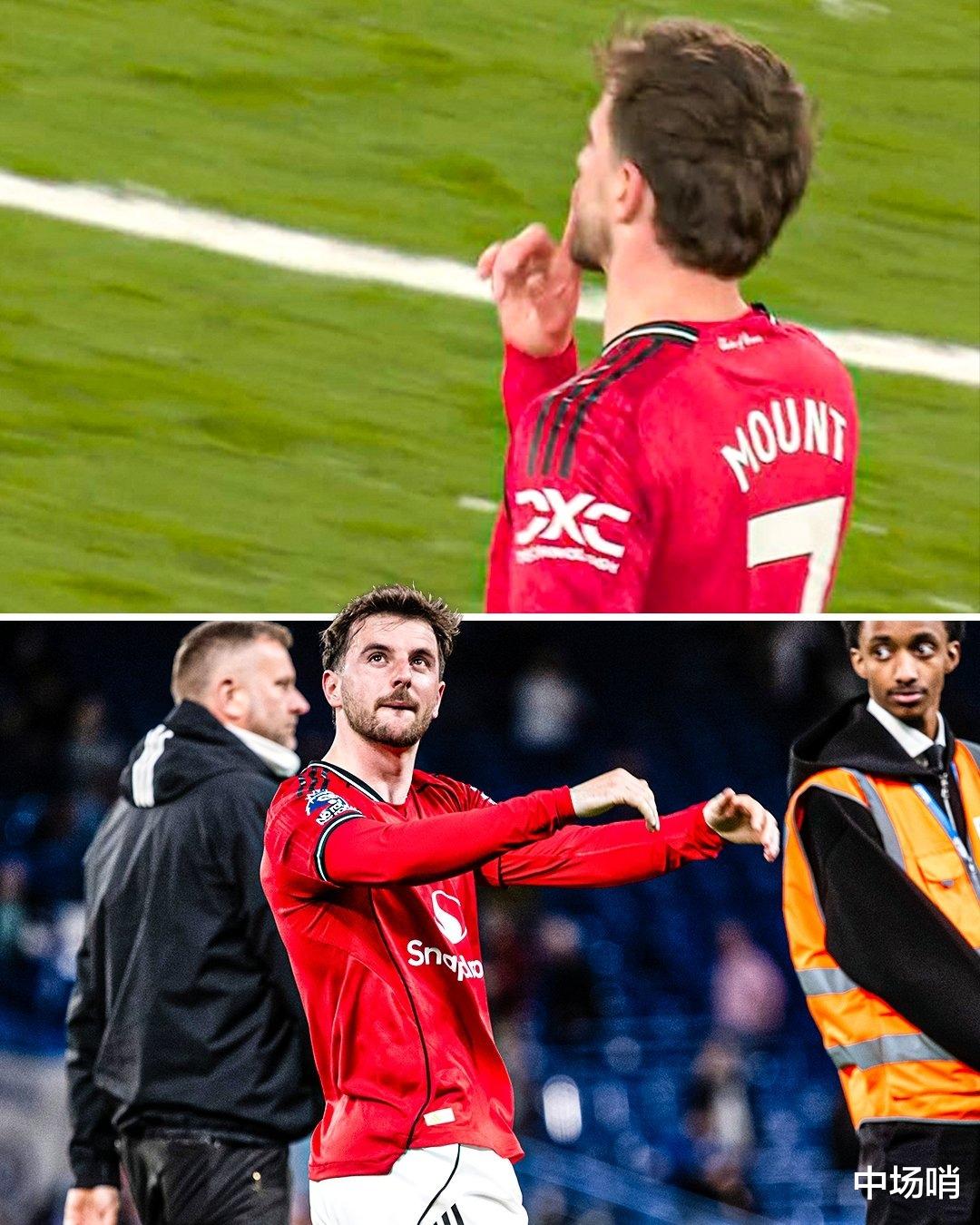 然后,在曼联已将胜局锁定、终场哨即将吹响之际,芒特将右手食指竖在嘴唇前,做出了一个清晰的"嘘"的动作。