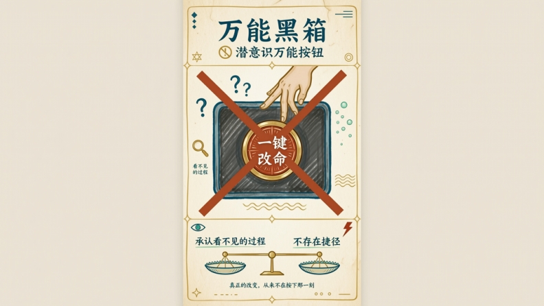 当然,讲无意识,也要守住边界。今天外面有很多话术,喜欢把潜意识说得像万能按钮。好像听几段录音,做几个暗示,人生所有障碍都能自动清除。这类说法,大多都不可靠。科学对无意识的态度,既不是否认它,也不是神化它。它承认:人并不完全透明于自己,很多行为背后确实有看不见的处理过程。但它也坚持:这些过程不是万能黑箱,更不存在那种轻轻一按就彻底改命的捷径。
