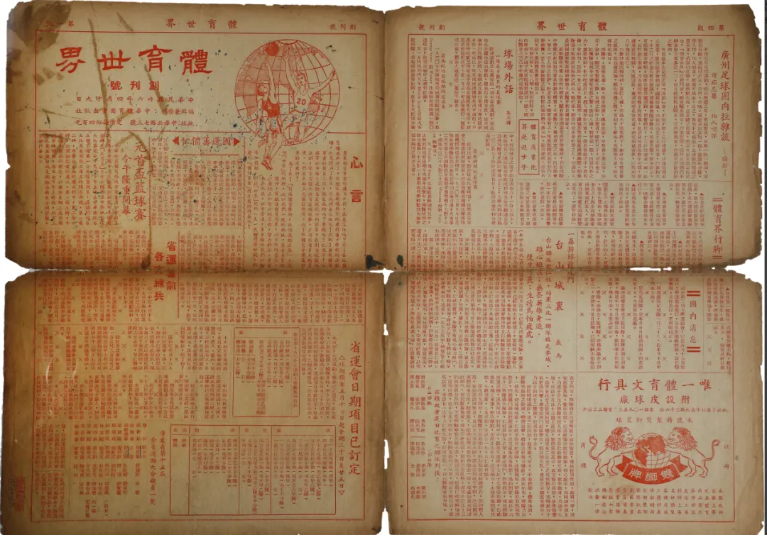 1937年4月19日《体育世界》创刊号 刊有文章:广东省第十五届全省运动大会 广州足球圈内拉杂谈等