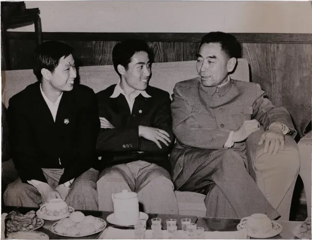 1959年周恩来总理亲切接见包括容国团在内的乒乓球代表团成员