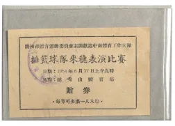 1954年6月27日 广州市体育运动委员会主办欢迎中南体育工作大队篮排球队来穗表演比赛门票