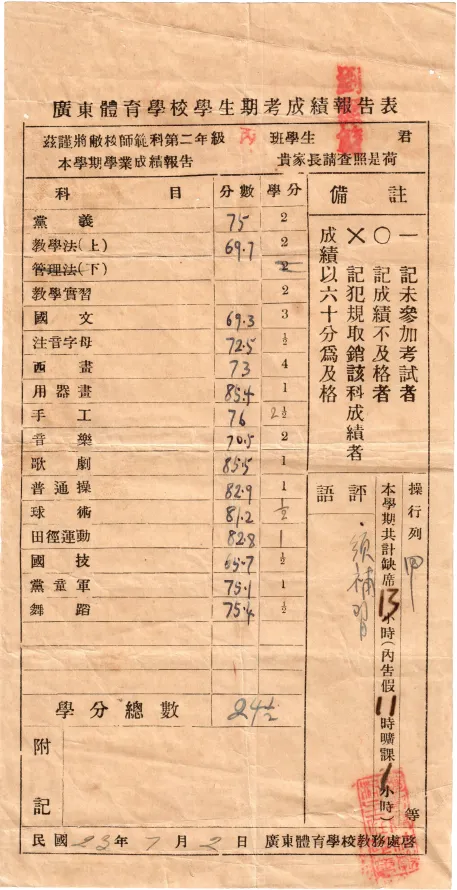 1940年广东省立南雄中学爬山比赛运动优胜奖状