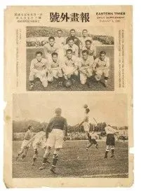 1936年9月1日中国足球队奥运会比赛合影照片《号外画报》刊登 上图:世运足球出战英国之中国队 前排右起:叶北华、孙锦顺、李惠堂、冯景祥、曹桂成 中排:陈镇和、黄美顺、徐亚辉