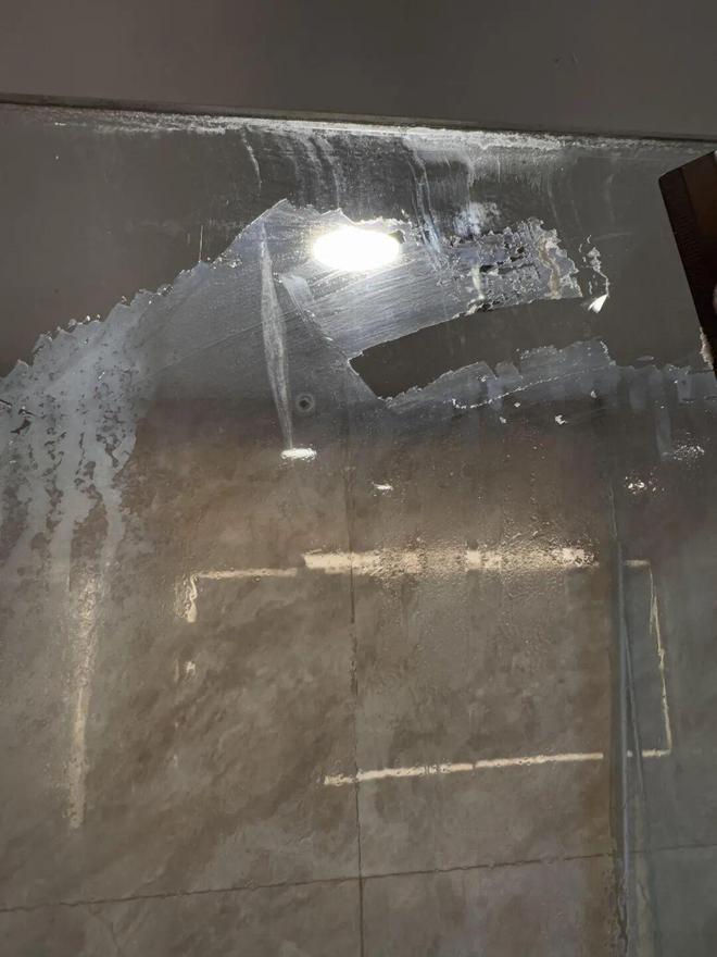 邪修做法:用挂烫机对着胶痕吹个几秒,利用高温蒸汽让胶质软化,这个时候再去铲胶、擦拭就会轻松许多了。