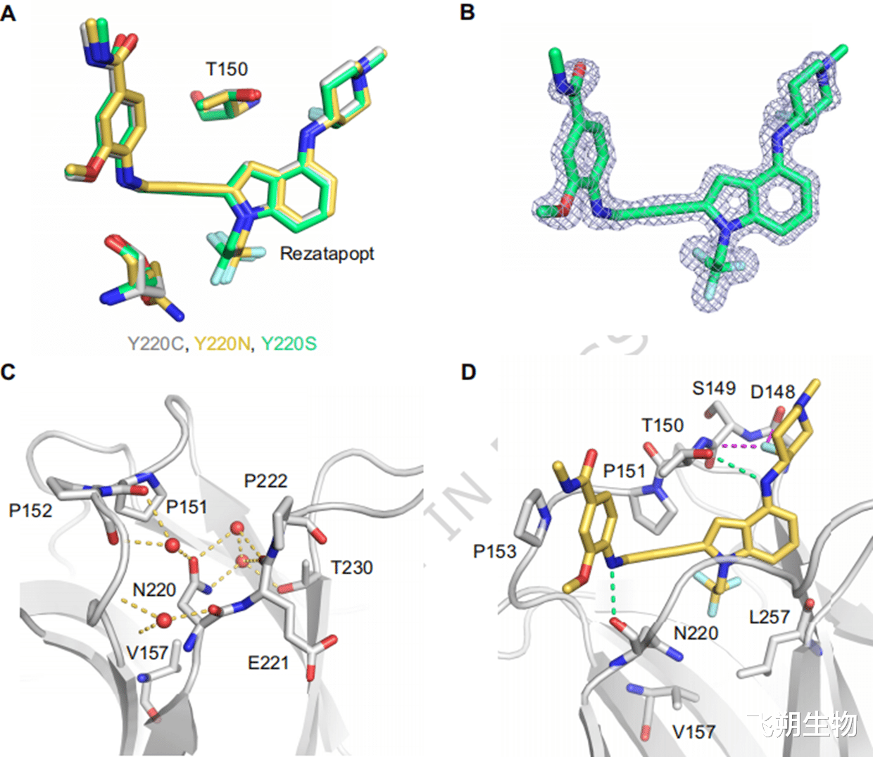 ▲Y220S和 Y220N突变体与结合 rezatapopt 的复合物结构[11]