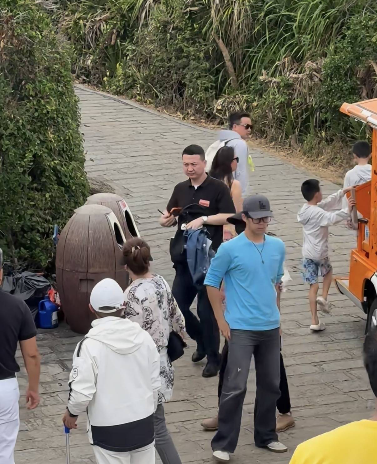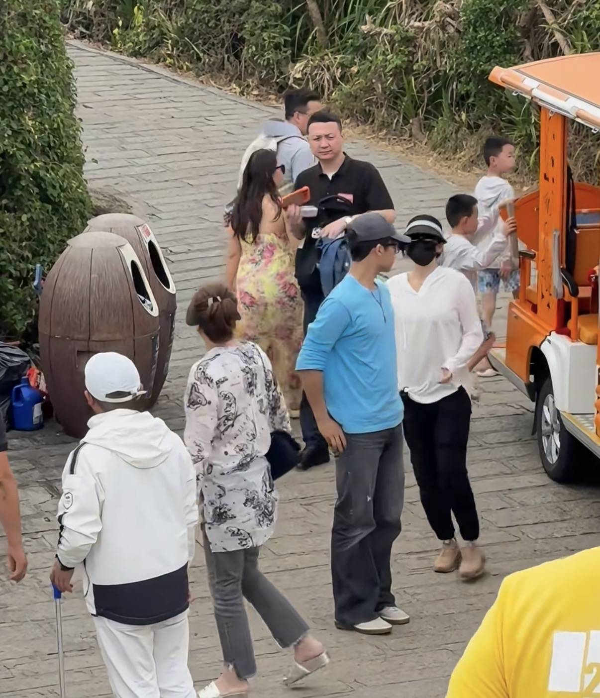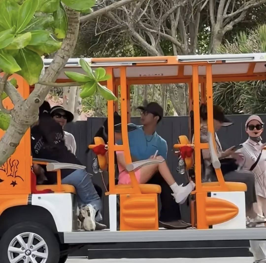 先是网友拍到了他们在观光车上的画面,章子怡穿着白色上衣、黑色瑜伽裤,戴着大檐帽,打扮的休闲接地气。