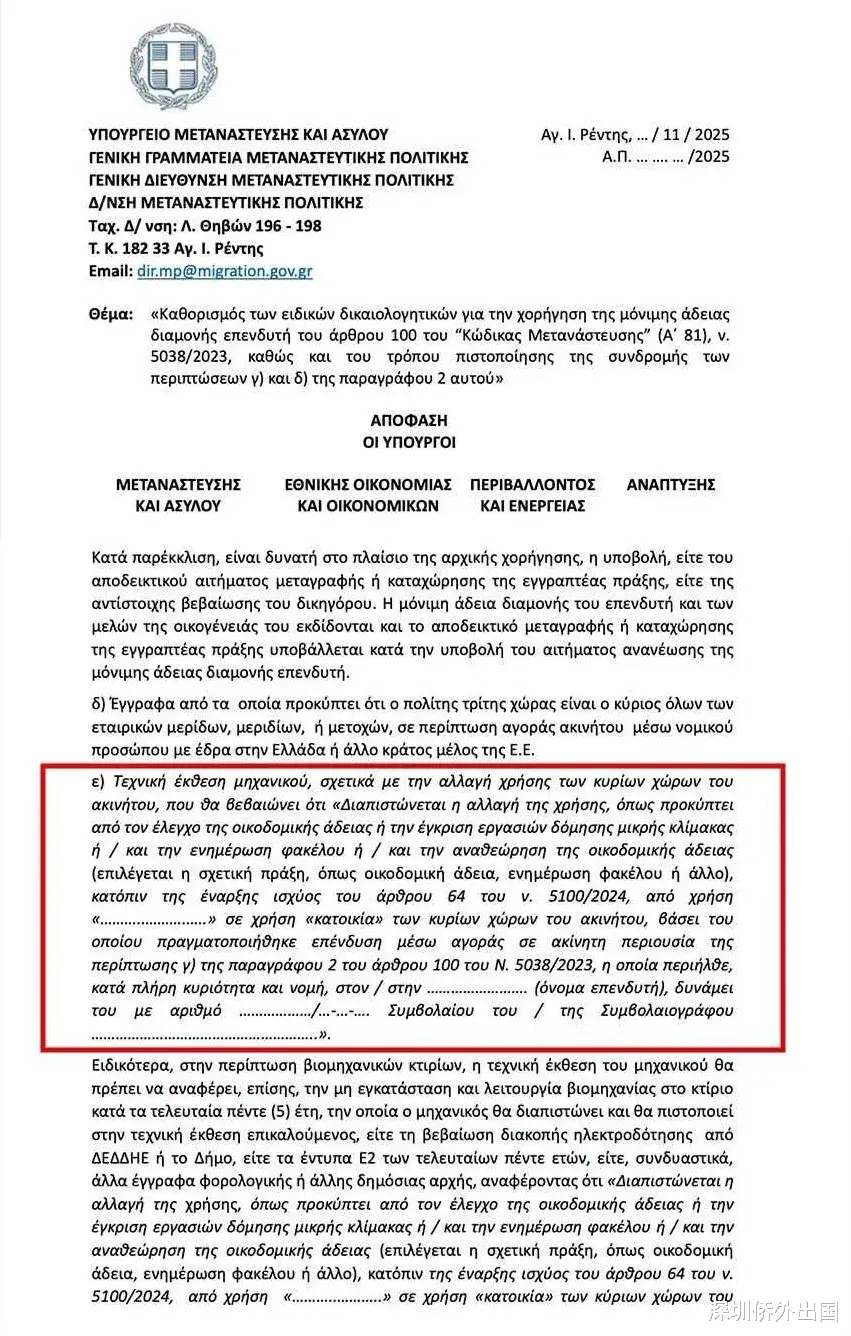 2025年11月11日,希腊四部门联合发布并正式生效了编号为B6014/2025的“商改住”专项法案,此次立法是对既往移民投资通道的一次重要补充与完善。