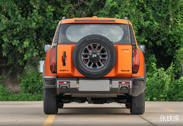 车尾部分,后尾门使用了侧开式的设计,带有背挂式的备胎。尾灯使用了多边形轮廓,内部的光源结构很别致,尾灯上部使用了黑色的带有横向纹理的饰板。车身尺寸方面,捷途纵横G700长宽高分别为5198/2050/1956毫米,轴距2870毫米。