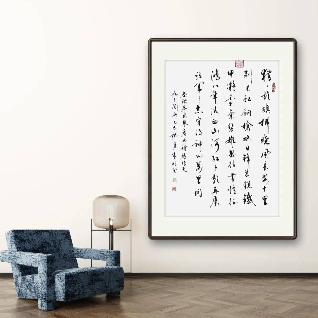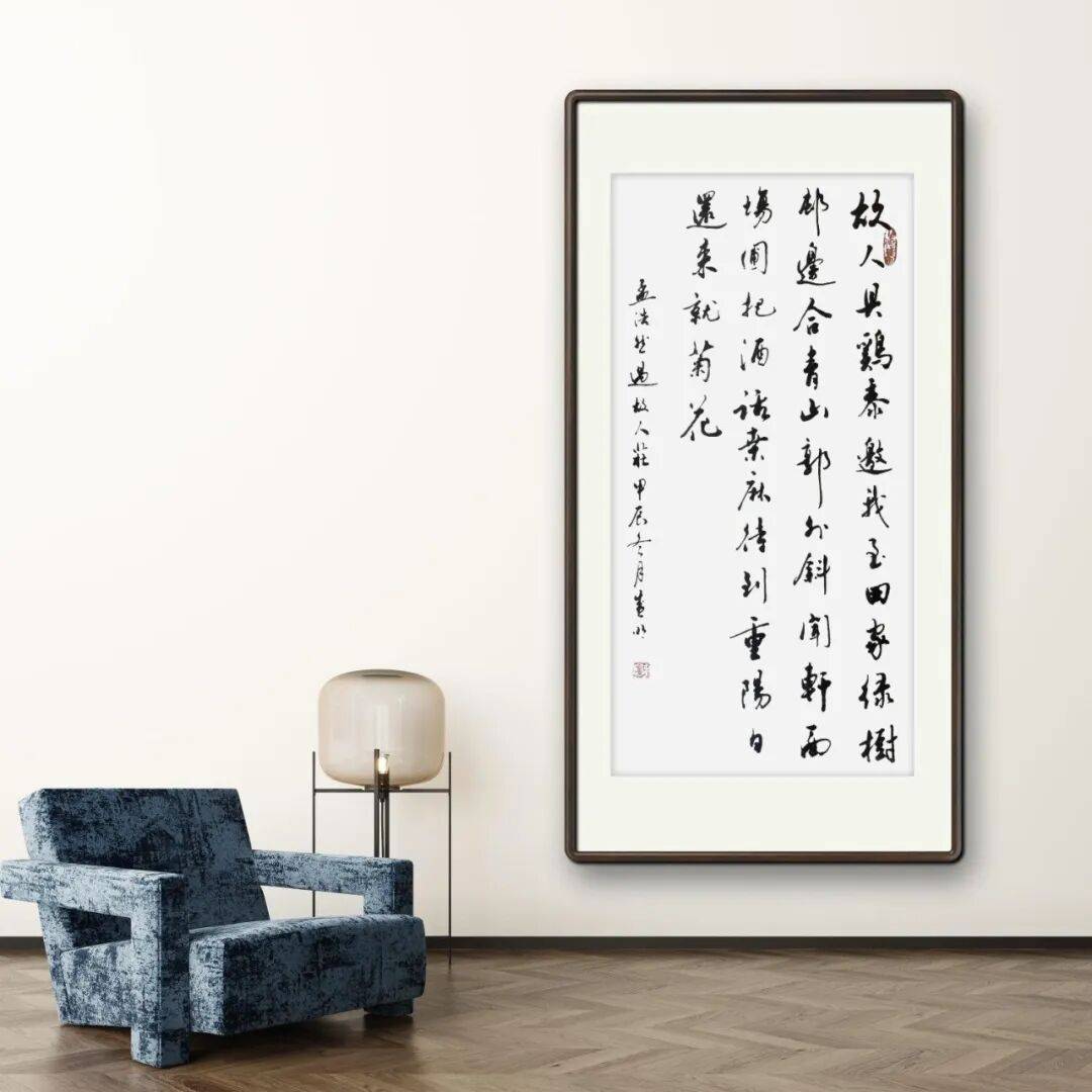 观其行草作品,字字之间上承下接、真气相映,独彰妙韵;行行之间呼应对比、节奏分明,整体效果突出,具有很强的视觉冲击力。这种章法布局的能力,体现了廖先生对书法艺术整体把握的高超水准,也使得他的作品无论是小幅尺牍还是大幅立轴,都能展现出独特的艺术魅力,引人入胜。
