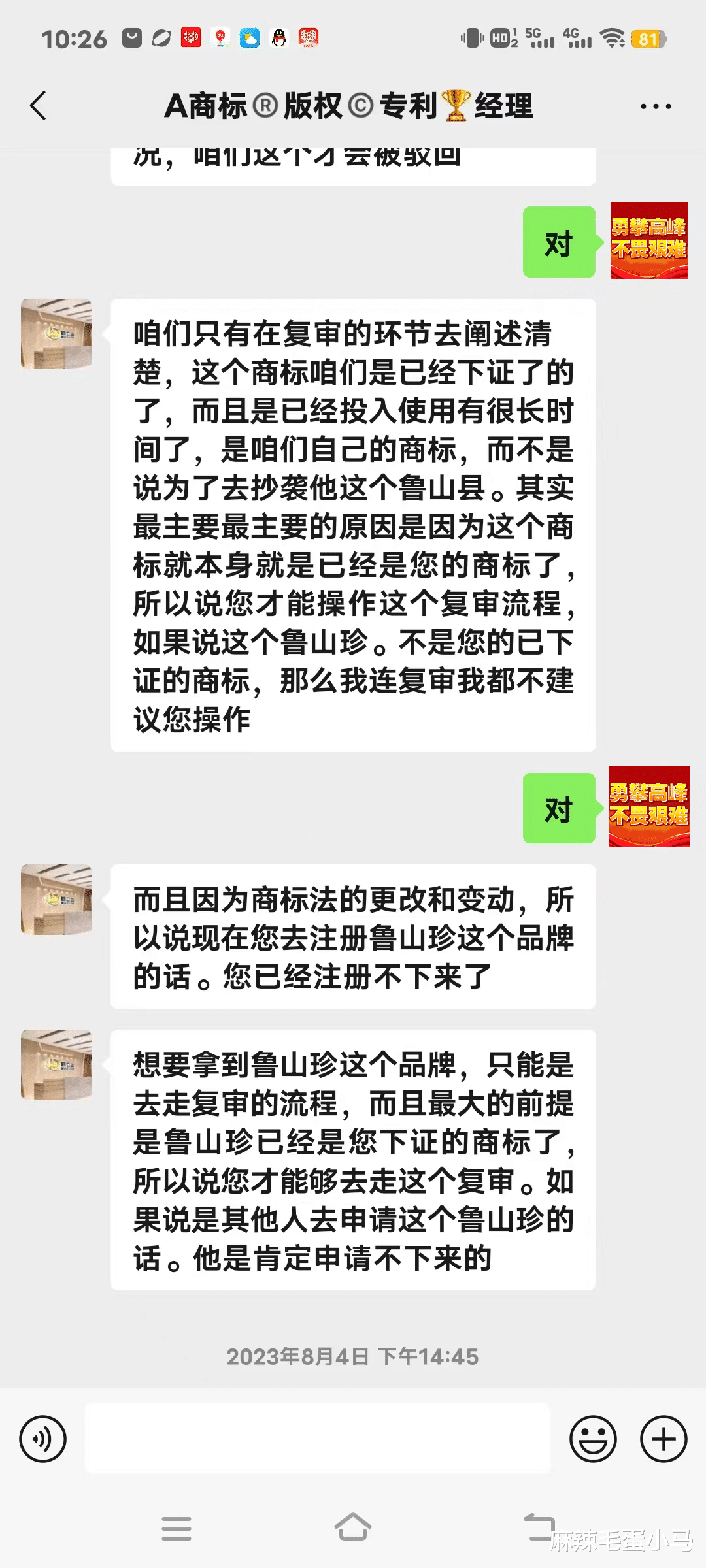 听上去挺有道理,是吧?尤其是那句:“如果不是您的商标,我们连复审都不建议您做。” 瞬间让我觉得,他们还挺“实诚”。