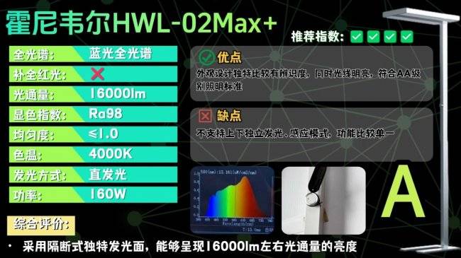 霍尼韦尔HWL-02Max+这款采用Sunturalux类太阳光光源,同时搭载蓝光激发全光谱技术,能够将蓝光控制在符合RG0豁免级蓝光标准内,同时呈现较为舒适的光线,但相比具备红光增益的护眼灯来说,还原自然光上会存在一定的差距。