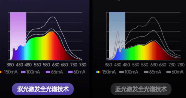 全光谱激发技术分为紫光和蓝光激发,而优选紫光激发的原因很简单: