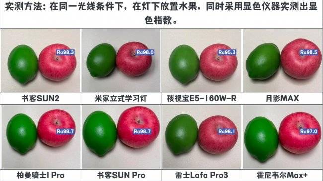 其次是第二梯队的书客SUN2、月影MAX、雷士Lada Pro3以及米家立式学习灯;这4款护眼灯实际显色指数在Ra98以上,色彩还原度高。