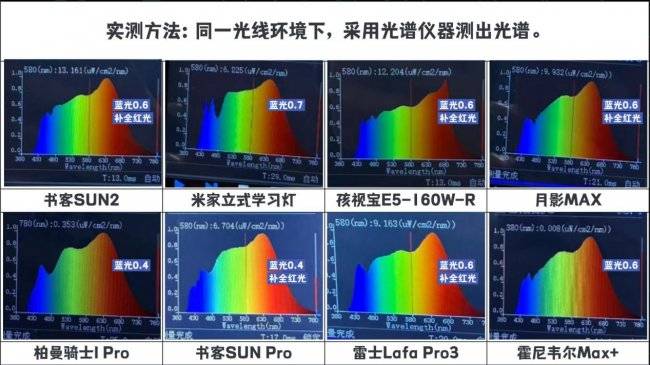 ·实测原因:实测全光谱是判断光线是否舒适护眼的关键之一,市面上存在很多宣传全光谱,但实际上光谱结构并不完整,不仅存在高蓝光对视网膜形成较强刺激,还可能干扰人体的昼夜节律,而光谱连续连续性高低、是否补全红光都可能造成视觉差距,严重的还会造成视觉疲劳,不仅不护眼还可能伤眼。