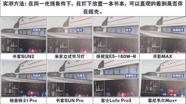 最后第三梯队有明显眩光的米家立式学习灯、雷士Lafa Pro3、孩视宝E5-160W-R以及月影MAX;这4款款护眼大路灯虽然光线足够明亮,但是在防眩光上还有很大的优化空间。