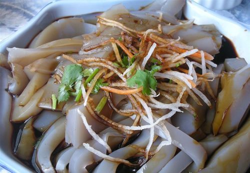 荞面灌肠,一道源自山西太原的地道特色菜,即将荞面与猪肉、大葱、生姜等食材巧妙结合,独特的烹饪工艺让这道菜备受食客喜爱。荞面灌肠外表呈现出诱人的棕红色,口感Q弹有力,猪肉馅儿鲜美可口,搭配蔬菜的清香,让人回味无穷。一口咬下,既能感受到荞面的滑嫩,又能品尝到肉馅的美味,仿佛是舌尖上的一场盛宴。这道传统美食,不仅美味,还具有丰富的营养价值,是太原人引以为傲的特色佳肴。