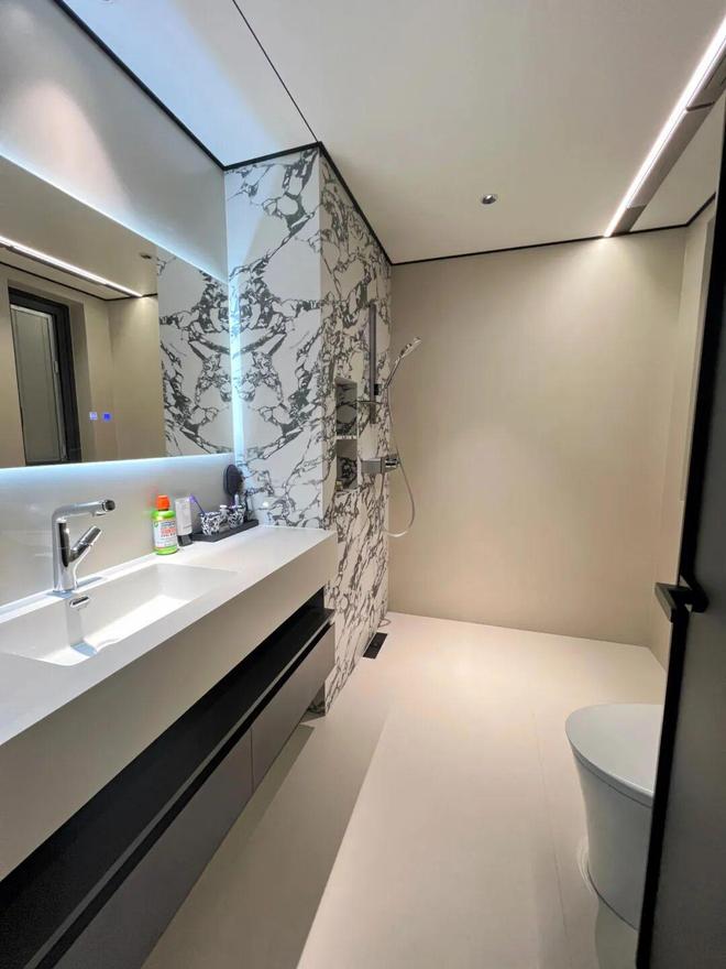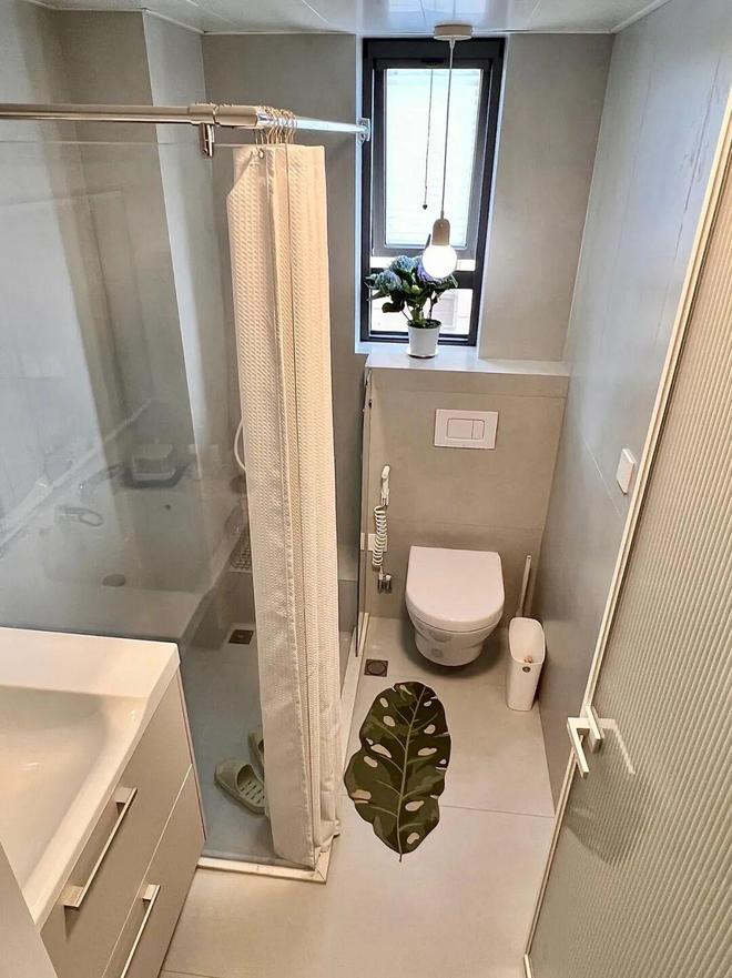此外,在卫生间面积小,且适合做长方形淋浴房的情况下,还有效规避了玻璃门不好开的问题。