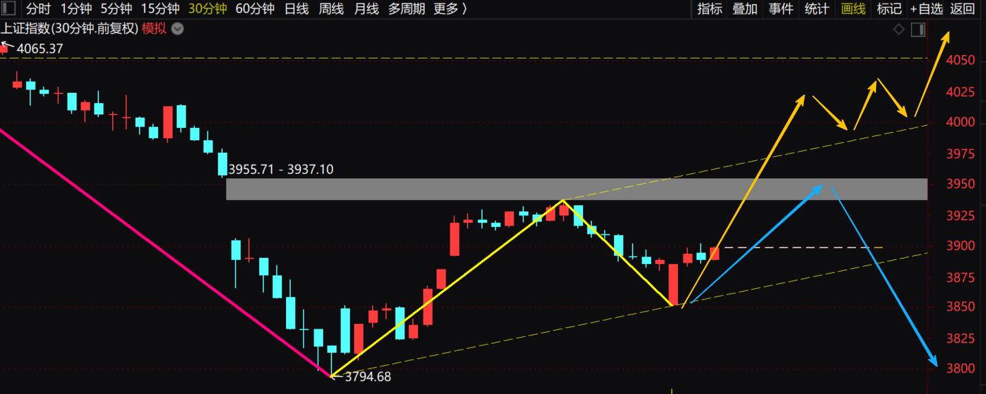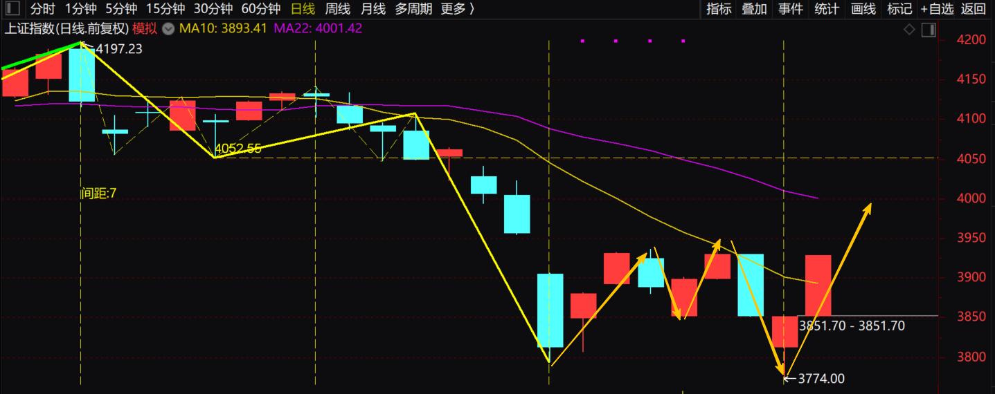 那出了这个回踩买点,是不是就意味着大盘已经筑底成功了?答案是否定的。从短期走势来看,经过今天的震荡上涨之后,3794点引发的这波反弹,根本不可能走出直接V型反转的行情,后续大概率会走比较复杂的震荡式筑底,这个筑底的过程,时间上要到4月份才会正式结束。
