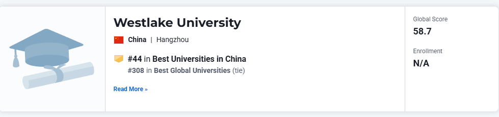 从更宏观的层面来看, 西湖大学的存在本身就在改变某些规则,U.S.News全球排名第308位,大陆高校排第44位,ARWU全球处在301-400的区间,一所民办高校能达到这样位置,在5年前差不多是不敢想的事情,首届本科生全都去伯克利、杜克还有康奈尔等名校交流,博士毕业生九成以上走上学术之路,生源质量都快靠近华五(指中国前五所顶尖高校)的门槛。