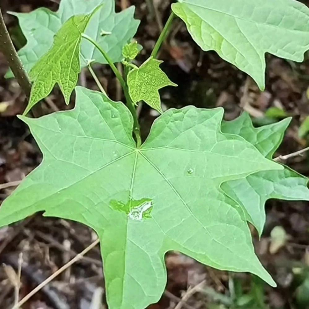 叶:单叶互生,形状变异较大,常见掌状5~7裂,稀可为3裂或9裂,基部两侧常不对称。上面深绿色,下面淡绿色,幼时两面均有柔毛。可用于跌打接骨。