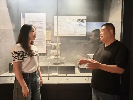 (在河南钧窑博物馆师傅刘志军向徒弟陆一笑介绍古代钧窑文化)