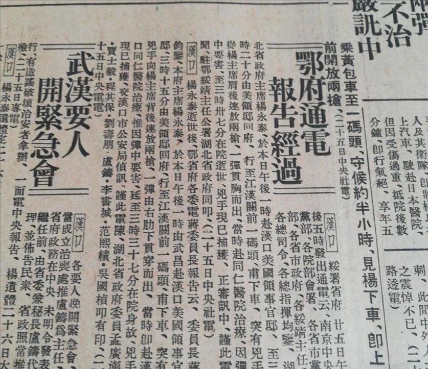 1936年10月,杨永泰在汉口轮渡码头遭枪击身亡。