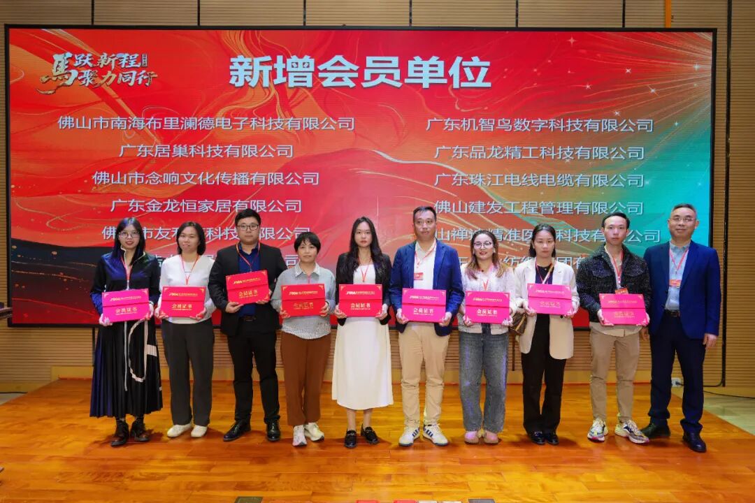 华夏银行股份有限公司佛山分行、广东禅控园区运营管理有限公司、广东工业设计城发展有限公司成为副会长单位;佛山市宏锦安科技有限公司等5家企业成为理事单位;广东珠江电线电缆有限公司等22家企业加入协会大家庭,为协会发展注入新鲜血液。