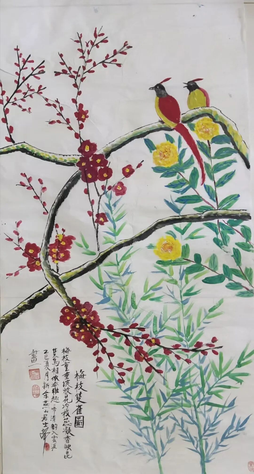 设色纸本,梅枝雙雀圖126x69cm创作年代2025年夏季