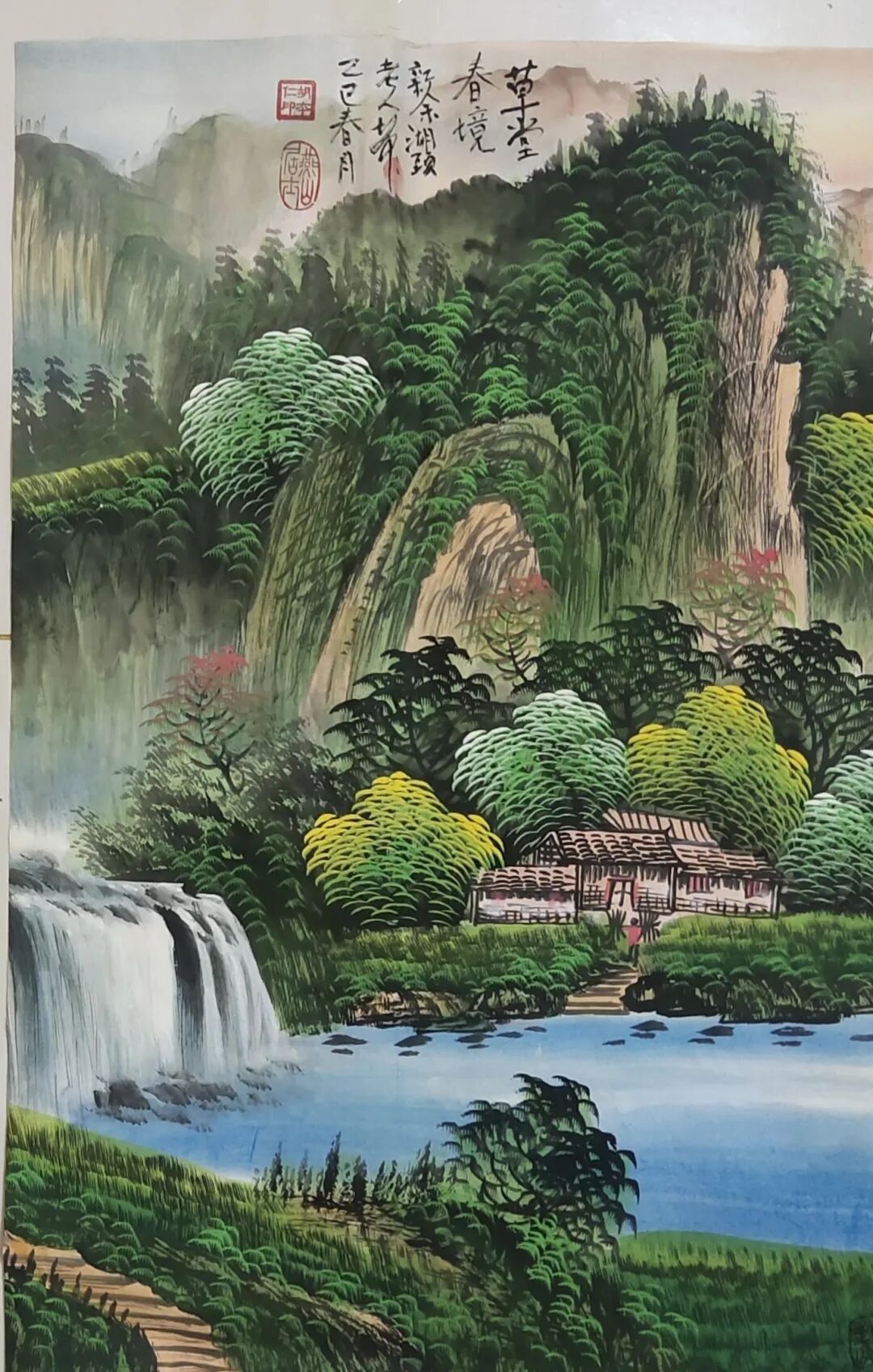 设色纸本,翠境布瀑布圖69x45cm创作年代2025年春月