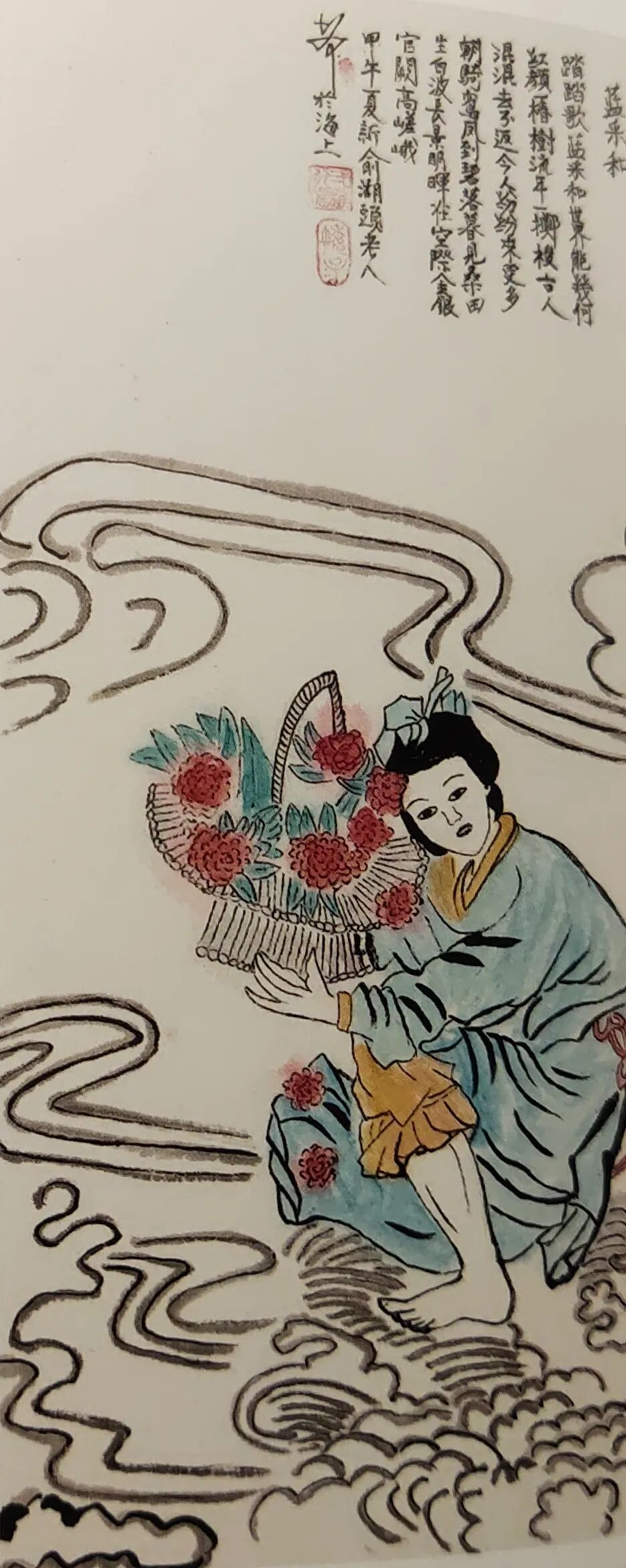 设色纸本,携琴圖79x36cm創作年代2014年8月