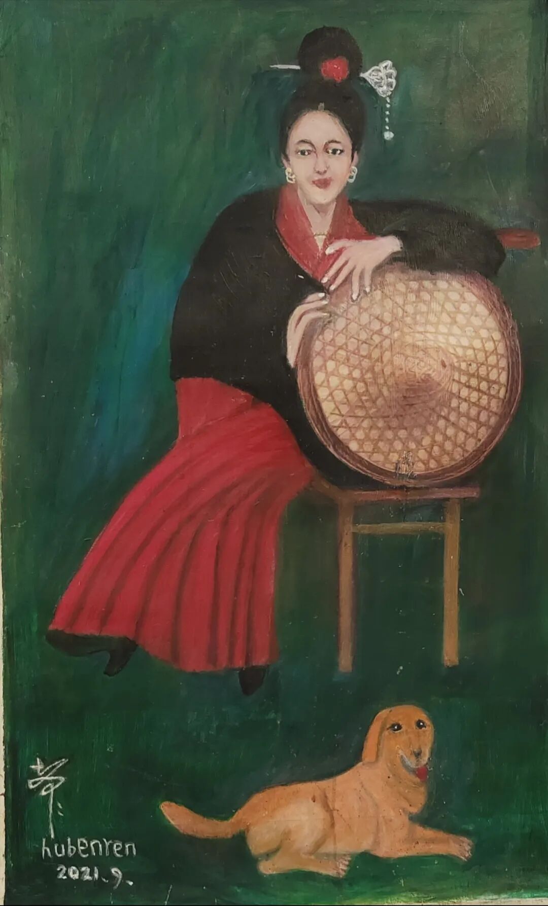 布面油畫,斗笠少女78x49cn创作年代2021年9月