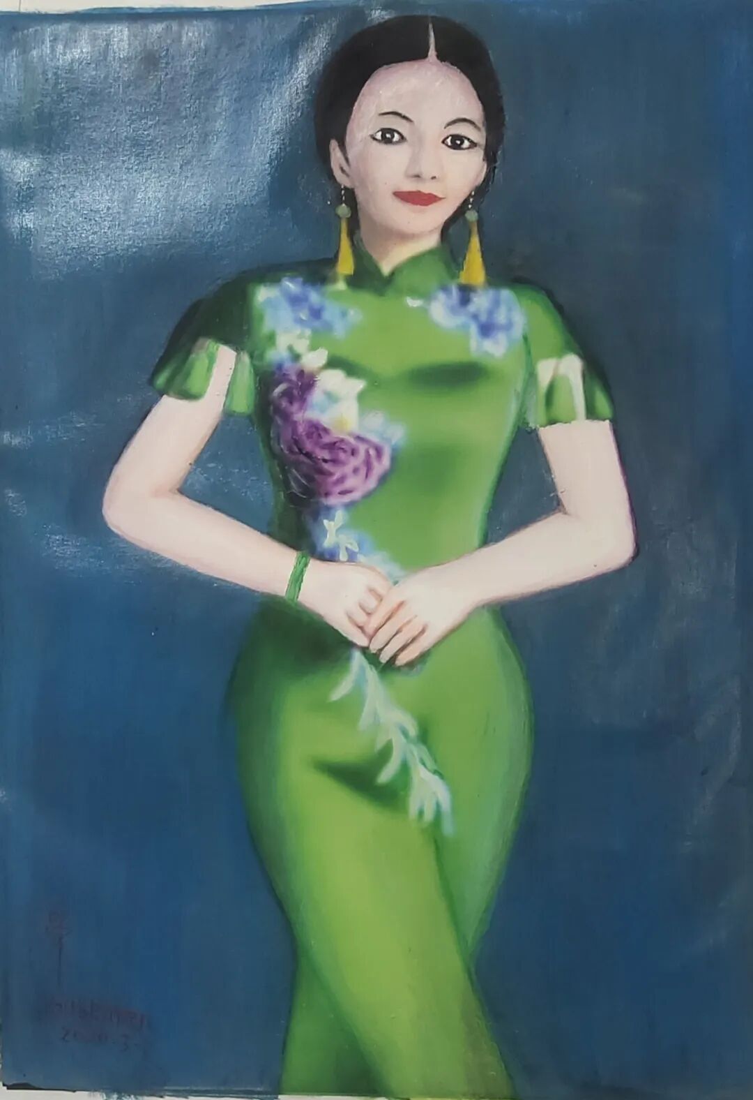 布面油畫,弹琴少女170x73cm创作年代2022年8月