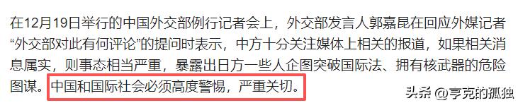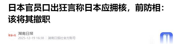 12月18日,日本首相官邸一名高级官员公然宣称,日本应当拥有核武器。