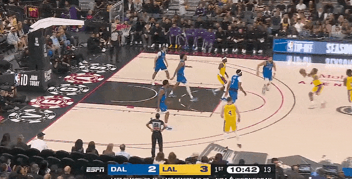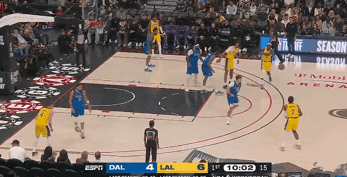 NBA季前赛,湖人对阵独行侠的比赛正在进行中。