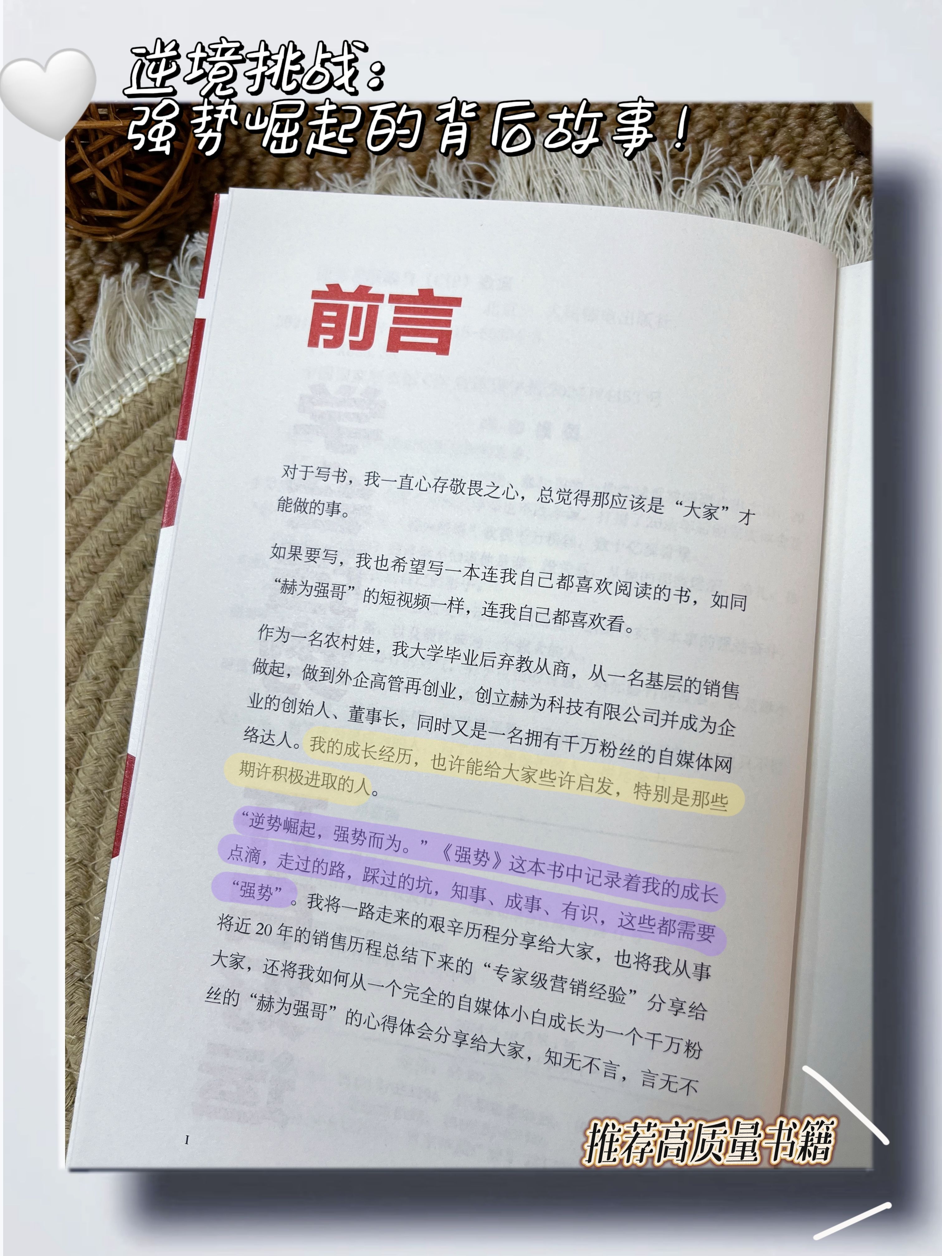 "逆勢崛起, 强勢而为。" 《强势》这本书中记录着我的成长点滴, 走过的路, 踩过的坑, 知事, 成事, 有识, 这些都