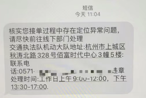 刷定位不仅躲不过平台,还会被交管部门查处。最近就有司机接单的时候甩定位,收到短信要求去线下部门处理。