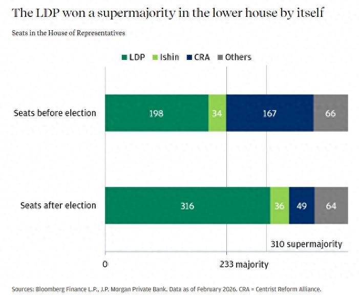 至关重要的是,这代表着三分之二的绝对多数,加上执政联盟伙伴维新党,执政联盟以352个席位占据主导地位。这场决定性的胜利对日本经济、市场和投资者意味着什么?