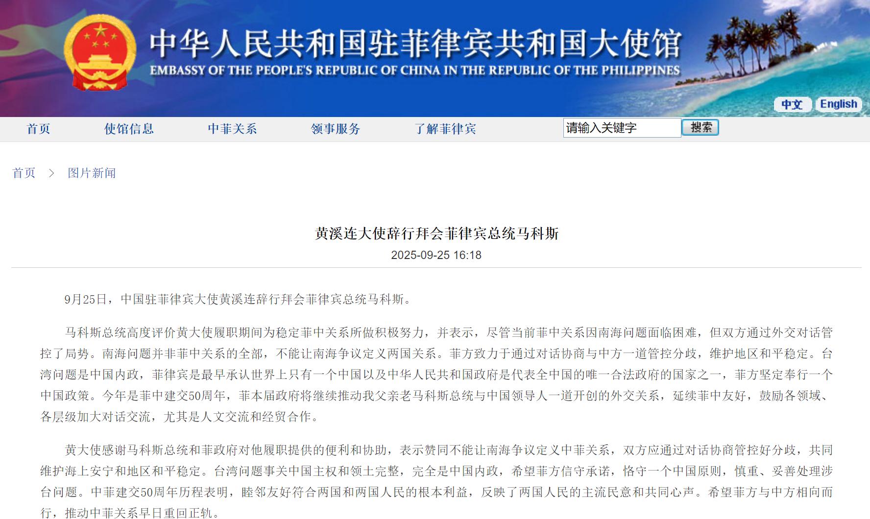 据中国驻菲大使馆最新消息,日前黄溪连大使辞行拜会菲总统,此时的马科斯一反常态,将姿态摆得前所未有的低。