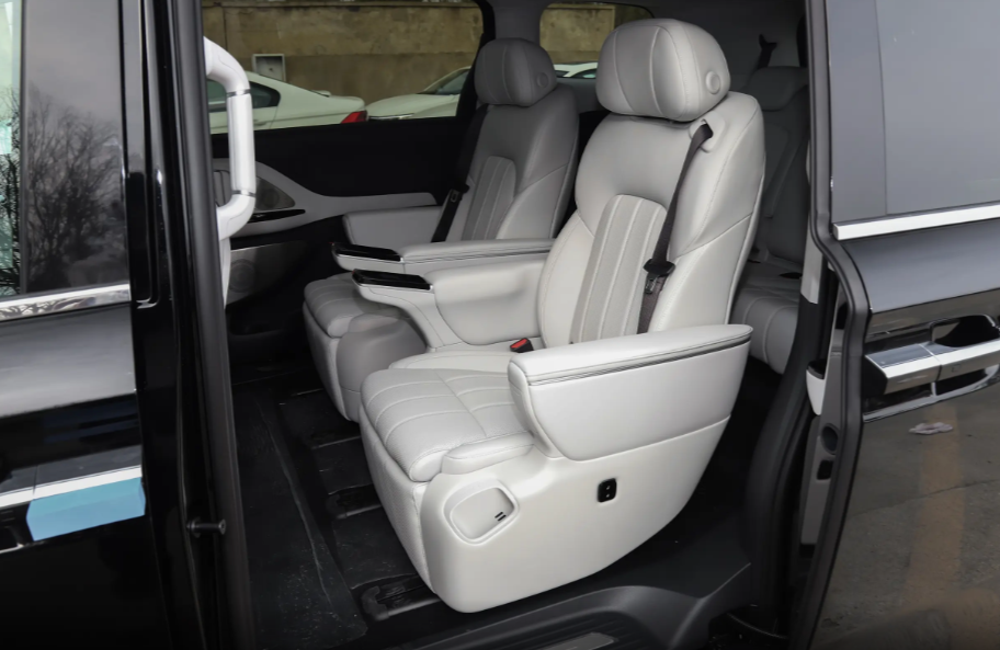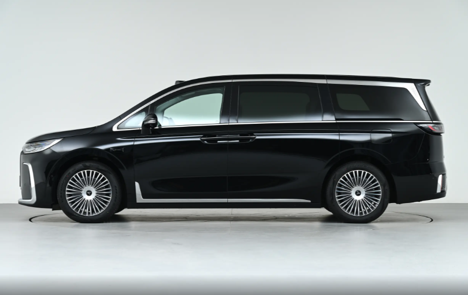 车身侧面就是一款传统MPV该有的样子,平直车身轮廓尽量避免对车内空间造成影响,同时衬托出自身的强大气场。车窗上沿和侧裙处均加以L状银色饰条进行点缀,再加上银色多轮辐轮圈,无形中再次提升车身精致度,笔直腰线贯穿车身,双侧电动侧滑门并没有缺席,遗憾的是取消了前排电动吸合车门、感应后备箱、主动闭合式进气格栅等配置,用车便捷性不是那么给力,再次坐实自身入门车型的身份。