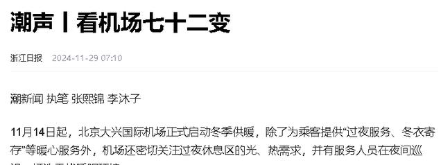 1、原文刊登于浙江日报2024-11-29发布的关于《潮声丨看机场七十二变》的报道;