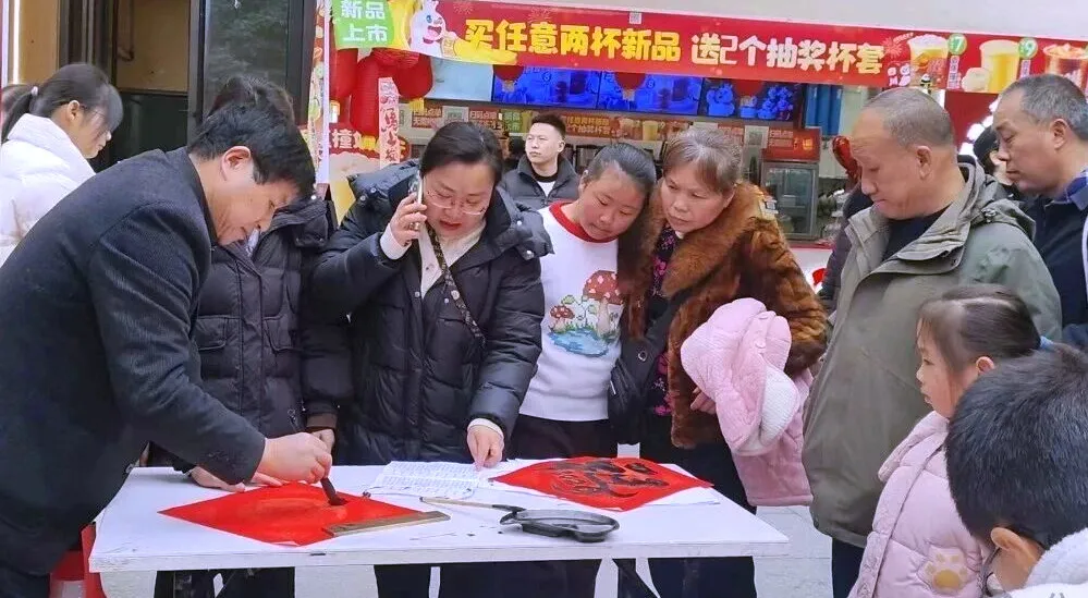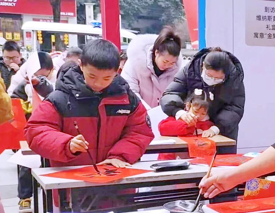 此次活动不仅是文化惠民之举,更是一场生动的美育传承实践。学生们在李老师指导下认真书写,将祝福融入笔墨。学生家长项海娥表示,活动让孩子在服务群众中锻炼了技艺,更懂得了奉献与担当。学生王瀚阳也兴奋地说,看到大家拿到春联高兴的样子,心里特别甜,更明白了“书画养心,更要服务人民”的含义。