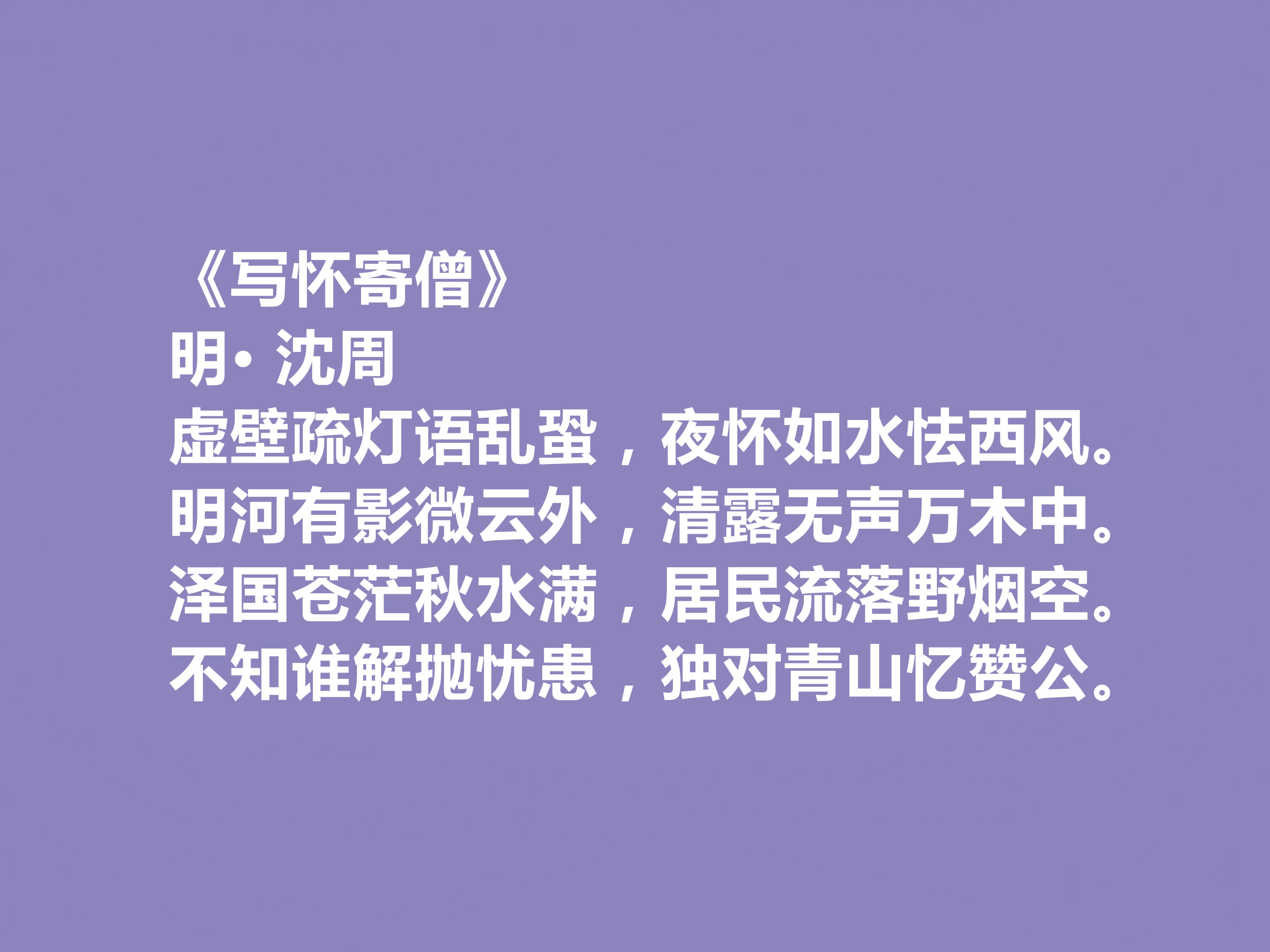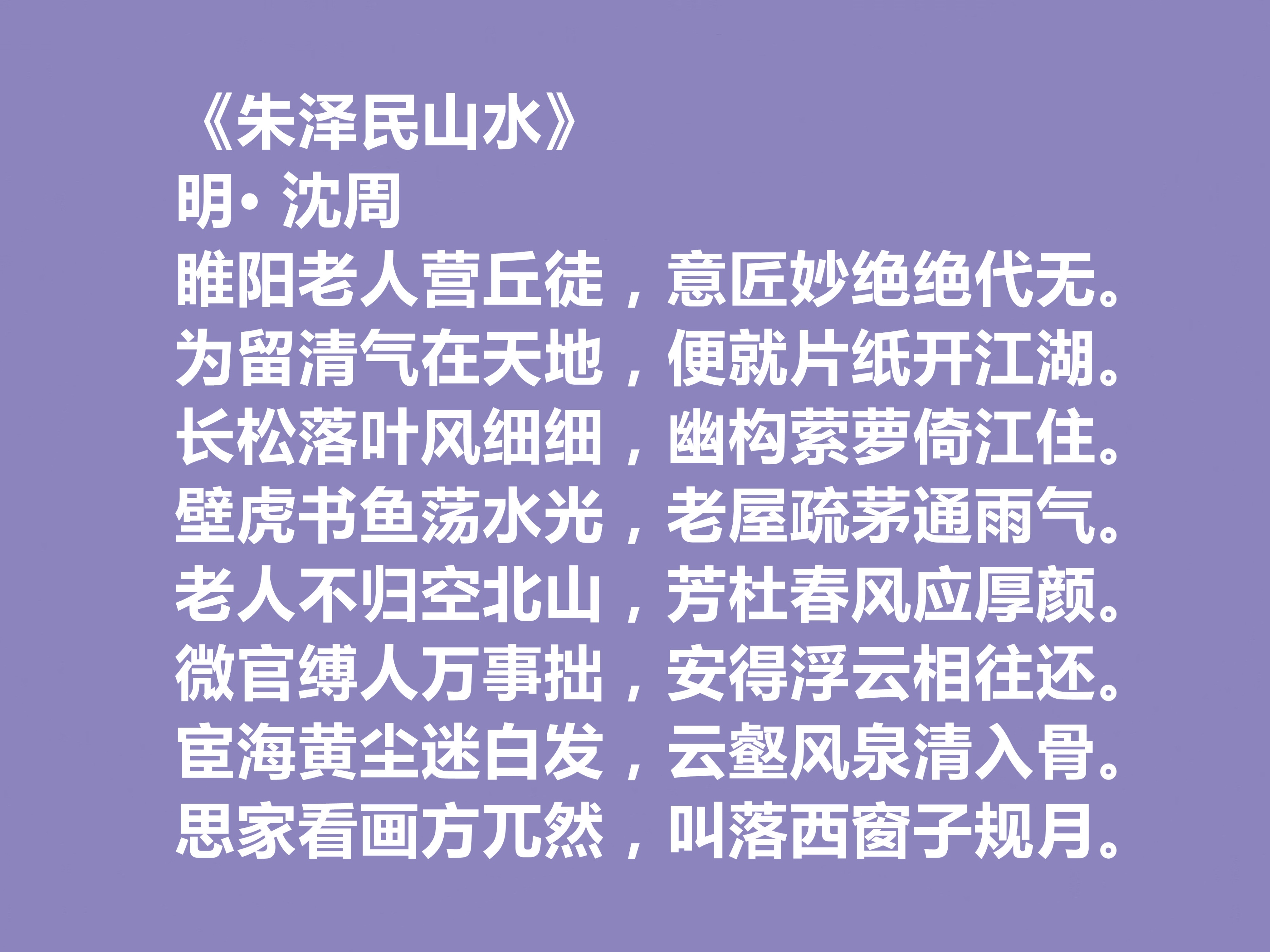 沈周作为明代“明四家”之首、吴门画派的开创者,在文坛占据枢纽地位,以诗、书、画三绝贯通古今。他打破艺术门类壁垒,构建“诗书画一体”的创作范式,既提升了文人画的文化品位,又为明代诗文注入清新气息,今天我们来欣赏他的十首诗。
