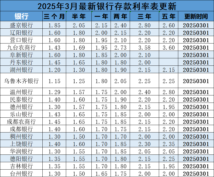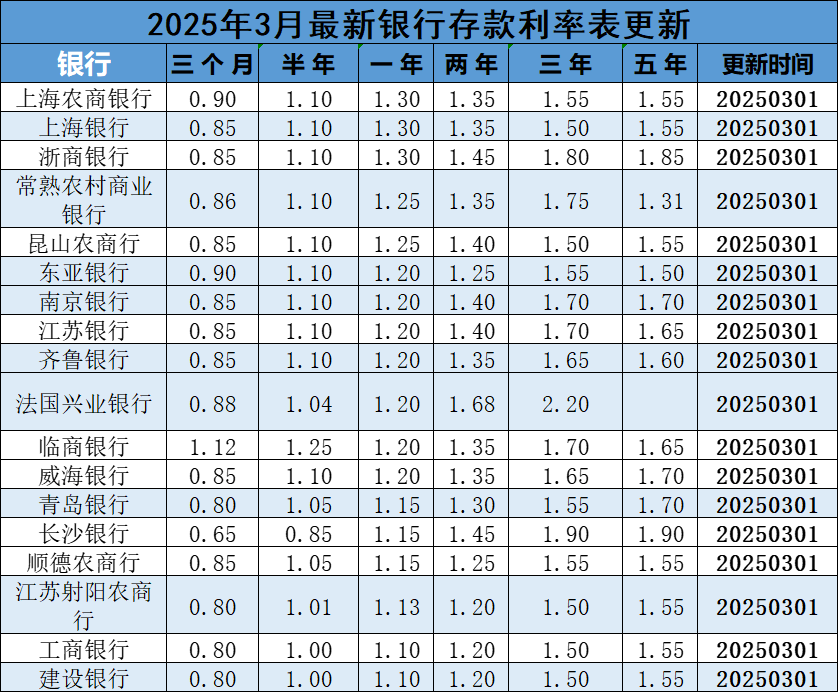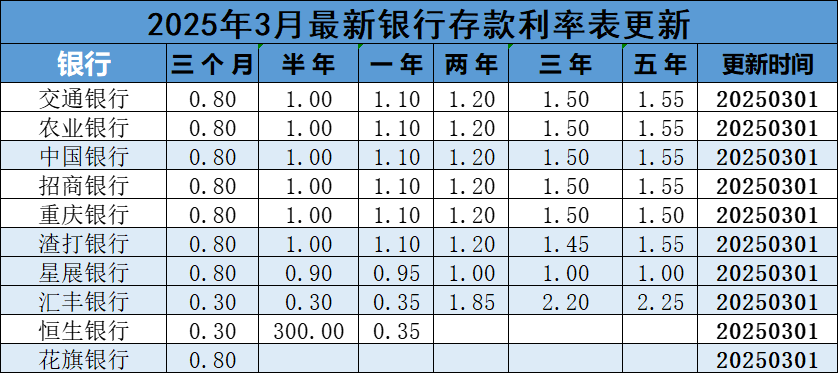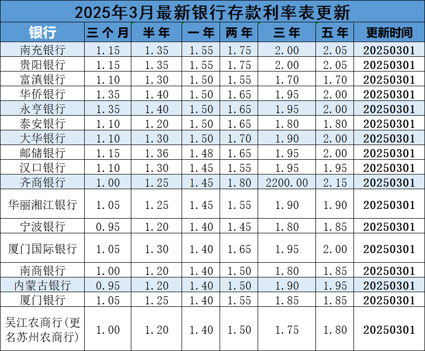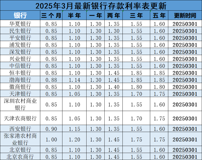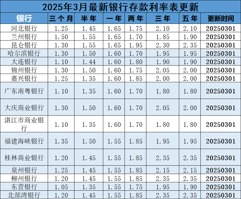 2025年3月最新银行利率