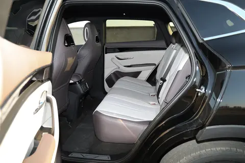 宋PLUS EV内饰采用“环抱式智慧座舱”设计,15.6英寸可旋转中控屏与12.3英寸全液晶仪表组成双联屏,四音区语音识别支持连续指令输入,响应速度仅0.3秒,且支持方言识别。座椅采用Nappa真皮包裹,主驾支持12向电动调节,副驾支持8向调节;后排座椅支持15°-35°无级调节,坐垫采用高回弹海绵,实测1.8米乘客膝部空间达两拳,头部空间一拳三指。储物空间方面,全车设28处储物格,包括中控台镂空区域(可放置女士手提包)、门板储物槽(容积达4L)等;后备箱标准容积574L,后排座椅放倒后扩展至1477L,实测可装载洗衣机+冰箱+10箱书籍,且后备箱盖板支持两级调节,灵活应对不同高度物品。音响系统搭载12个扬声器,支持杜比全景声,人声表现清晰,实测在播放交响乐时,乐器定位准确。