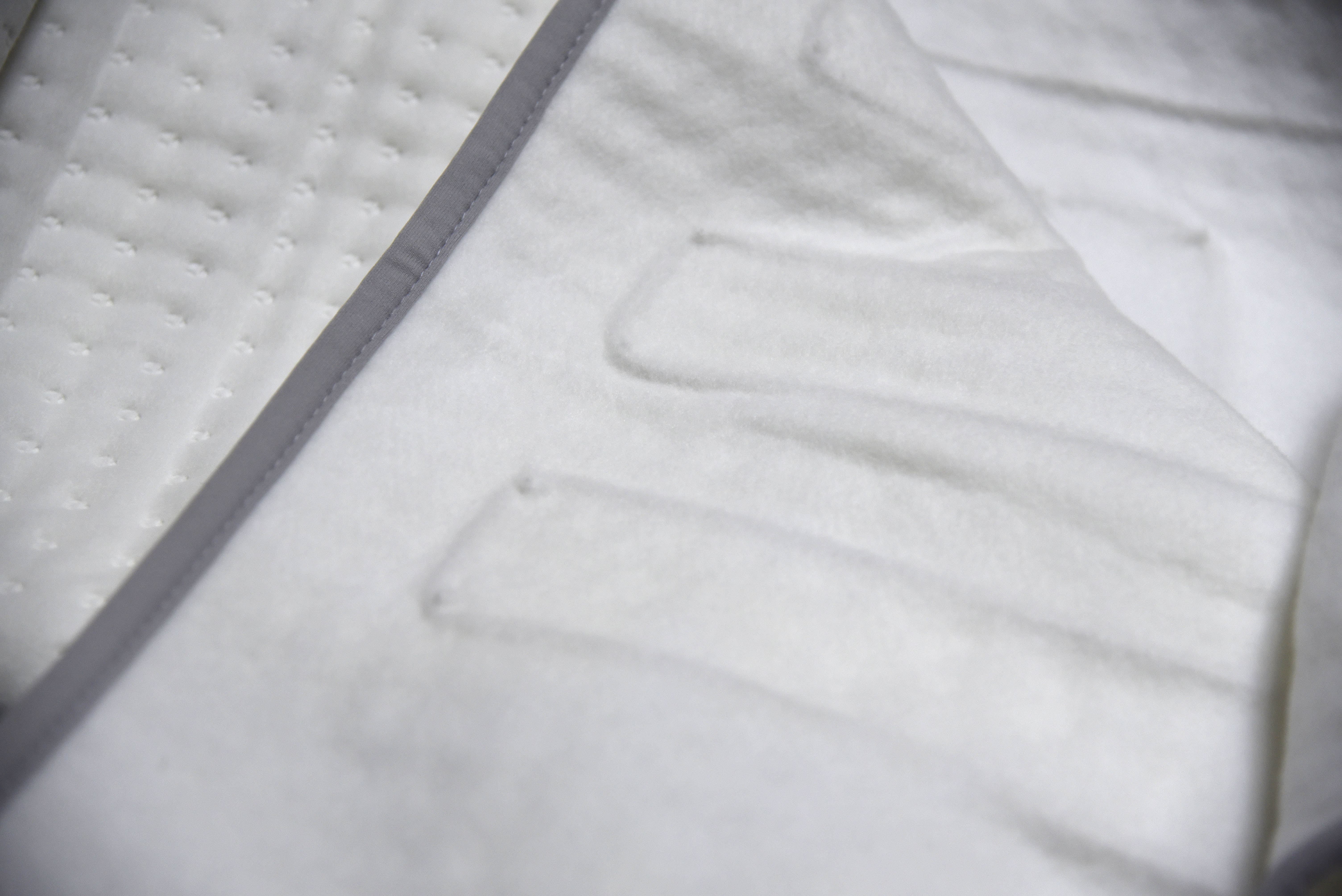 然后是防水设计。除了电源线接口的防水护套,电热毯面料还做了防泼溅处理,孩子不小心洒少量水在上面,不会渗透到内部加热丝,用干毛巾擦干后就能继续使用。而且电热毯支持机洗,拆卸掉电源线后,能直接放进洗衣机轻柔洗,孩子用容易脏,定期清洗很方便,洗了三次后,加热效果没有任何衰减,面料也没有起球、变形。