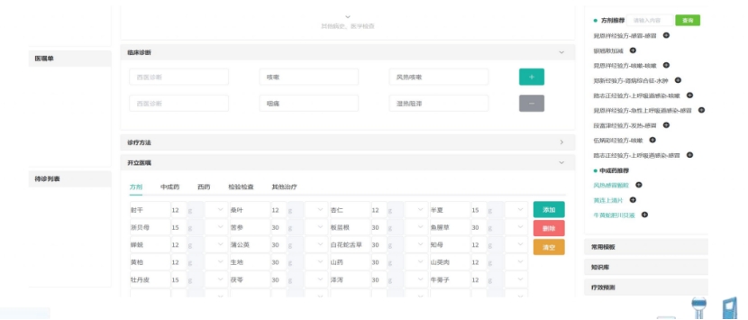 核心功能亮点3:智能方剂与中成药推荐基于序列到序列的深度学习算法,系统能够根据患者刻下症、现病史等信息,智能推荐3-5个国家级名老中医方剂或中成药组合,满足“一人一方”的个性化治疗需求。同时提供中成药的适应症、用法用量及禁忌说明,确保用药安全。