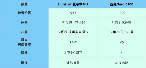 从头枕对比来看,夏草木这款也调节上下角度和高度、西昊这款的头枕也是这样的维度;从腰枕来看,夏草木这款的腰枕可以进行上下三个档位的调节,西昊这款的腰枕不能移动;扶手来看,夏草木这款可以进行上下、前后和360°旋转,西昊这款也能进行上下、前后旋转,但左右的话只能进行小角度旋转;后仰角度来看的话,两款椅子的最大后仰角度都在145°,因此整体来看的话,夏草木这款的可调节灵活度要更高点。