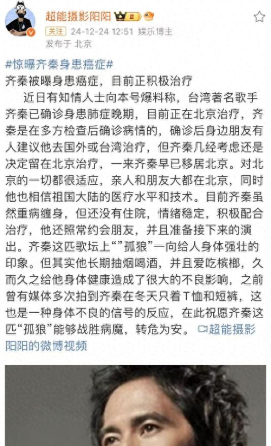 首先,引发这场风波的源头是某娱乐博主爆料齐秦患上肺癌晚期。爆料中细致地描述了齐秦先生的病情、治疗选择以及近期的一些公开露面情况。据说,齐秦先生在演唱会上的表现欠佳,身形消瘦,脸色蜡黄,甚至着装也与往日大相径庭,这些细节都被视为佐证。更令人担忧的是,有网友晒出与其近期的合影,照片中的齐秦先生看起来确实苍老许多。一时间,关于他健康状况的猜测与担忧在网络上迅速蔓延,引发广泛关注。我们不禁要问:这些所谓的“证据”究竟能说明什么?它们真的足以证明齐秦先生患有重病吗?